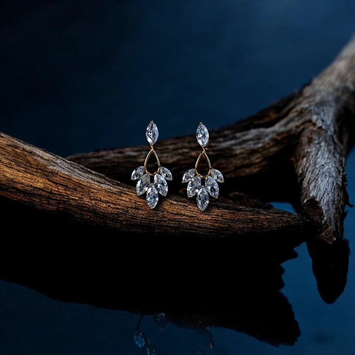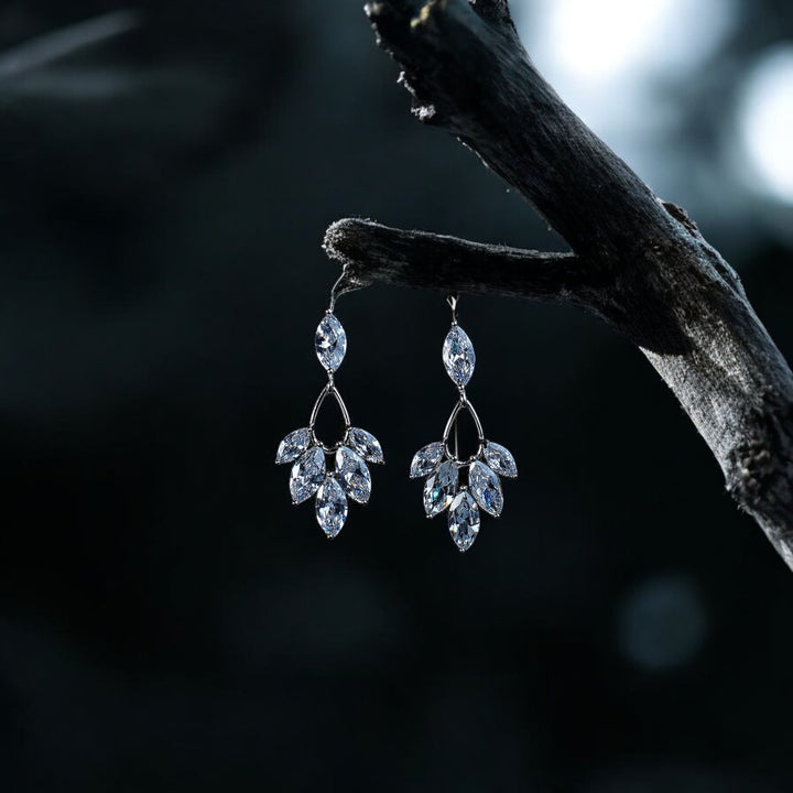 Each stone is expertly set in a sleek silver frame, enhancing their radiant sparkle with every movement. The elegant drop design elongates the neck, adding a touch of regal charm and sophistication. Whether you're attending a glamorous soirée or a romantic evening under the stars, these earrings will make you shine with an enchanting allure. ✨💫
